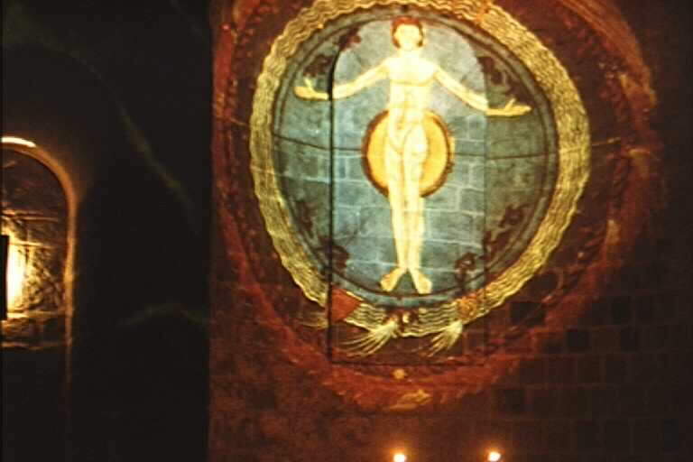 Projection on a pillar, part of Les Imaginaires - night tour with music & silence, shadow & light
