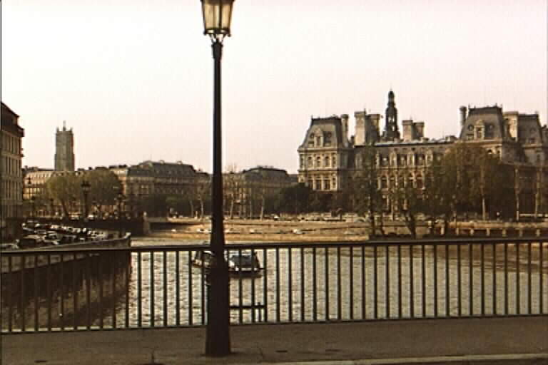 Crossing the Seine between Ile de la Cite and Ile St-Louis with Tour St-Jacques - gothic tower on the left and Hotel de Ville (town hall) on the right